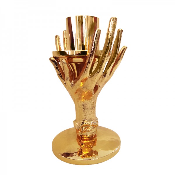 Castiçal em metal dourado em formato de mãos